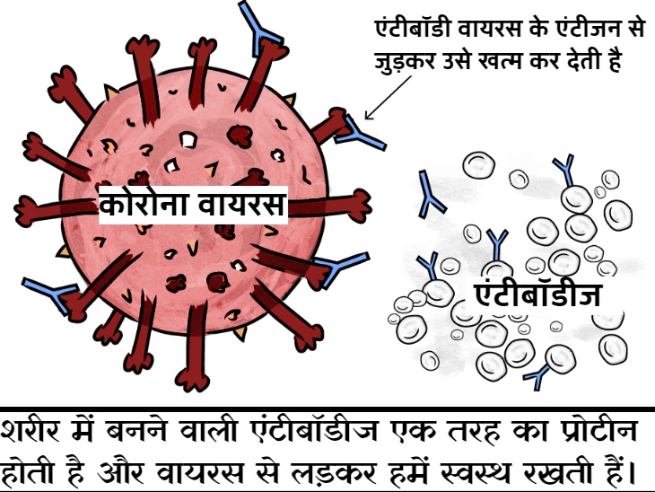 कोरोना से रिकवरी के बाद शरीर में तैयार हुईं एंटीबॉडीज दोबारा संक्रमण होने पर असर करेंगे या नहीं? इस सवाल पर डॉ. वार्ष्णेय ने कहा, वायरस या बैक्टीरिया के इंफेक्शन से लड़ने के लिए शरीर में एंटीबॉडीज बनती हैं। अलग-अलग बीमारी के एंटीबॉडीज बनने का का समय अलग-अलग होता है।
